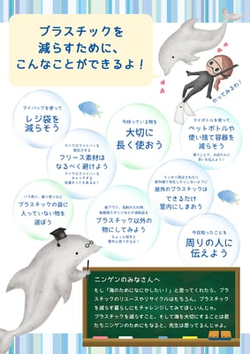 海洋プラスチック問題を分かりやすく解説している「教えて!イルカ先生」のリーフレット配布および、パネル貸し出し(A1サイズ×6点)を行っています。ぜひご利用いただければ幸いです。