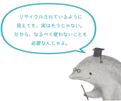 ニンゲンの作ったプラスチックは、リサイクルに出しても全部がもう一度プラスチックになるわけじゃないんじゃよ。