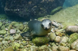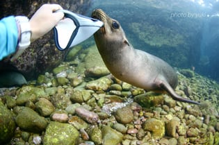 一緒に遊べるのは子供のアシカで、目の前までやってきて一緒に遊んでくれる。