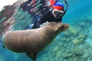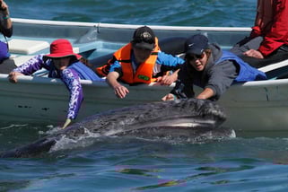 かわいい子供アシカと遊ぶことができる、メキシコ ラパスでのスノーケリング&スキンダイビングツアーに、コククジラのタッチング体験が追加されました!