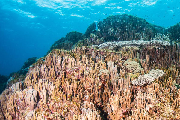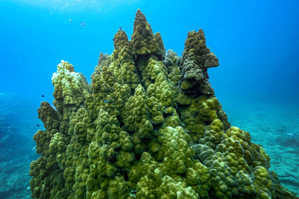 バルセロナにある有名な建築、サグラダ・ファミリアのようにそびえ立つサンゴ。すぐ隣に更に巨大なフカアナハマサンゴもあり、続けて見ることができます。