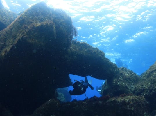 溶岩でできたアーチが見どころ。水中アーチは水深4m程度と12m程度の2箇所があり、レベルに応じて楽しめます。ツバメウオや魚の群れがいたりすることもあり、フィッシュウォッチングも期待できます。